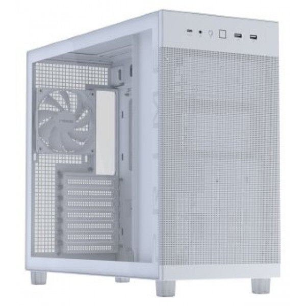 ASUS PRIME AP303 TG White. Tipo: PC, Color del producto: Blanco, Formas de factor de tarjeta madre soportadas: micro ATX, Mini-ITX, ATX. Ventiladores traseros instalados: 1x 120 mm, Diámetro de ventiladores traseros soportados: 120 mm, Diámetros de ventiladores superiores soportados: 120,140 mm. Tamaños de disco duro soportados: 2.5,3.5". Ancho: 215 mm, Profundidad: 485 mm, Altura: 425 mm. Ancho del paquete: 285 mm, Profundidad del paquete: 465 mm, Altura del paquete: 571 mm