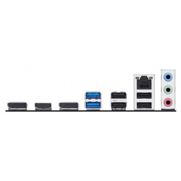 - Puertos E/S traseros: 2x USB 5 Gbps, 4x USB 2.0, 2x DisplayPort, 1x HDMI, 1x Ethernet 1Gb, 3x audio