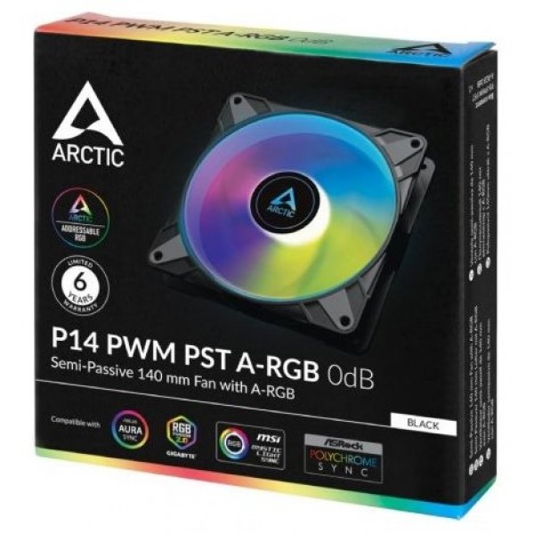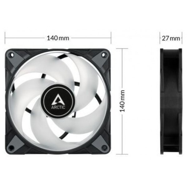 El ruido de funcionamiento del nuevo motor ARCTIC es prácticamente imperceptible, incluso a baja velocidad. Además, el P14 PWM PST A-RGB cuenta con superficies de contacto de goma, lo que minimiza las vibraciones audibles.