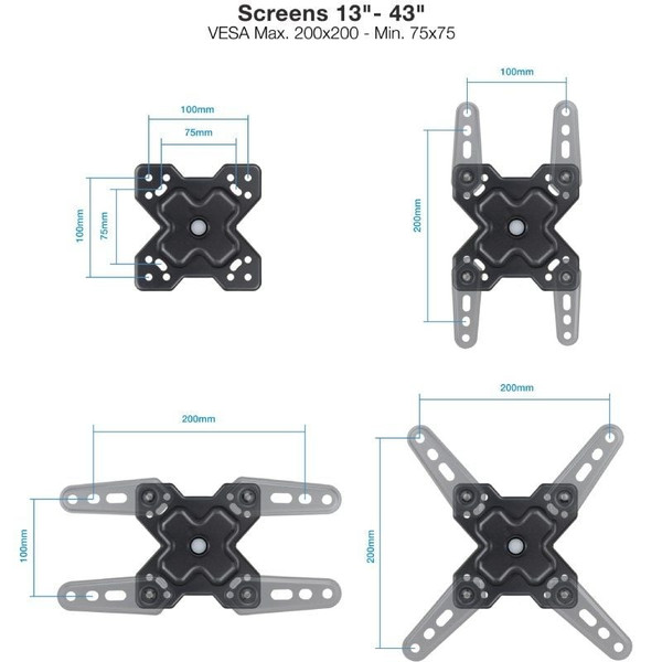 - Pantallas soportadas: 13"-43"