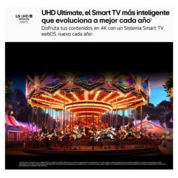 - Smart TV webOS 25 que evoluciona a mejor cada año renovándose en tu TV e incorporando las nuevas funciones de la IA y que está preparado para próximos apagones TDT. Más inteligente para una personalización y un control del hogar avanzados: reconocimiento de voz, recomendación de contenidos, configuración de imagen y sonido, asistente virtual y mando Magic Remote con puntero inalámbrico (no incluido, se vende por separado en esta web.)