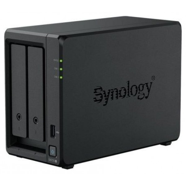 El DS725+ cuenta con conectividad 2.5GbE integrada y admite tanto SSDs SATA como HDDs en bahías internas de 2.5"/3.5", así como unidades M.2 NVMe a través de ranuras M.2 para su uso como caché.