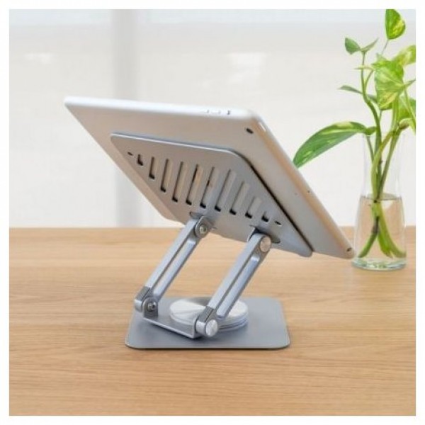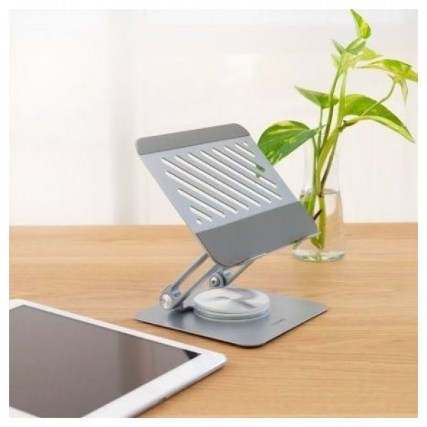 Soporte Elevador con rotación 360° y ajustable, para dispositivos de hasta 13”, Plata