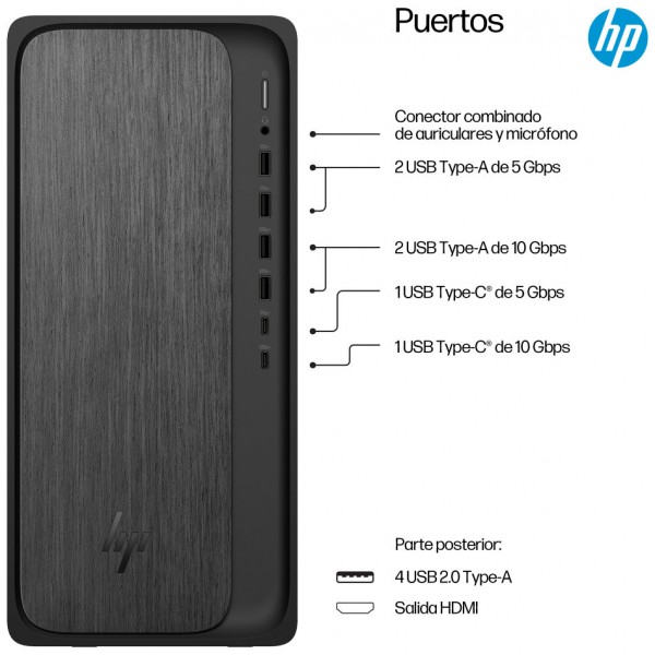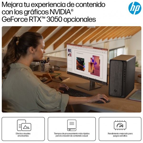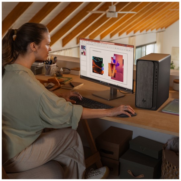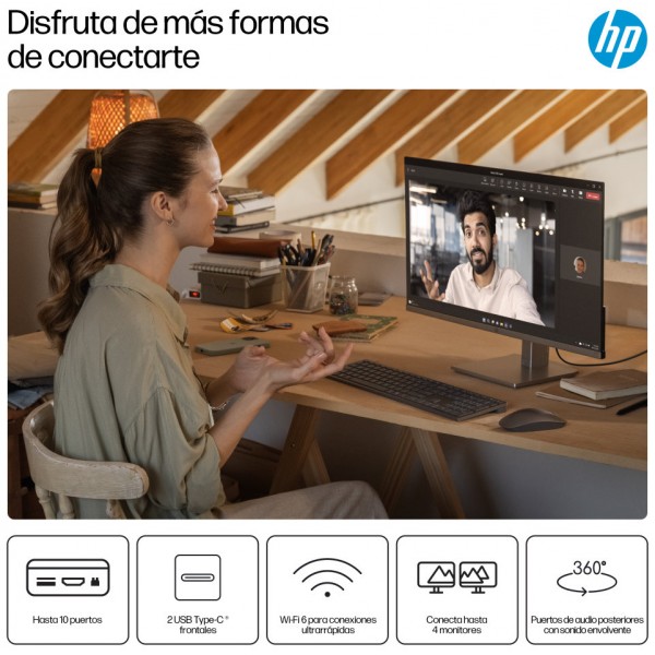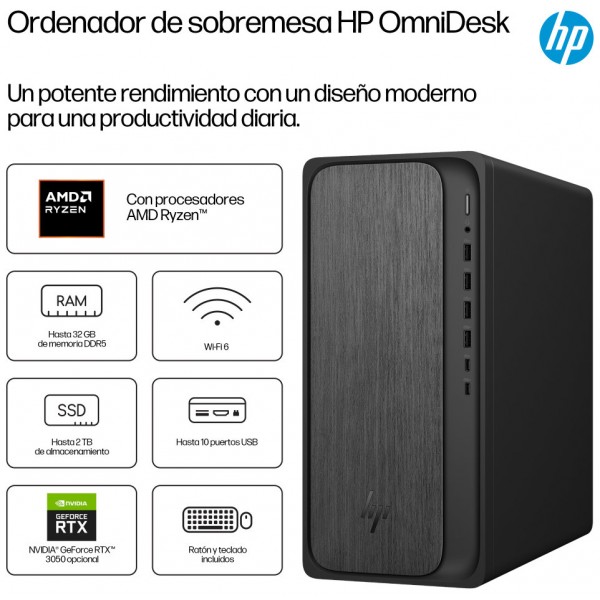 Obtén un rendimiento equilibrado y gráficos con gran capacidad de respuesta gracias al ordenador de sobremesa HP OmniDesk, equipado con procesadores AMD Ryzen™[1]. Las capacidades opcionales de IA admiten una multitarea fluida, mientras que la memoria DDR5 reduce los tiempos de carga. Mantén la productividad con los puertos más recientes, incluido USB-C[4], y gráficos opcionales para unas imágenes inmersivas.