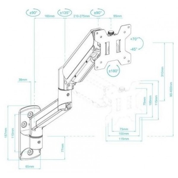 - Brazo regulable con pistón de gas