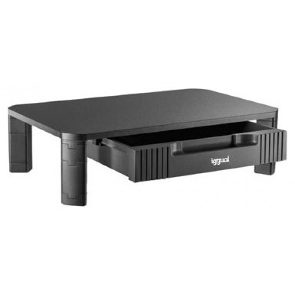 | Características | - Soporte elevador de monitor con patas - Elevable con patas desmontables - Patas con goma antideslizante - 1 cajón frontal (319 ancho x 300 profundo x 69 alto mm) - 2 separadores internos - Peso máximo soportado: 20 kg - Altura mínima: 10 cm - Altura máxima: 13 cm - Superficie de apoyo: 48 x 30 cm - Espesor de la mesa de apoyo: 12 mm - Peso neto: 2,09 kg - Medidas (embalaje): 515 x 330 x 78 mm - Peso bruto: 2,43 kg |