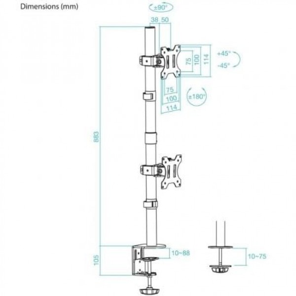 Soporte de Mesa, Giratorio e Inclinable, Vertical, para 2 Pantallas 13”-32”, NegroEspecificaciones