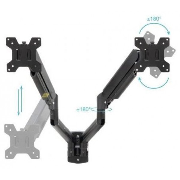 Soporte de Pared para 2 Monitores TooQ LP1434TNR-B/ Giratorio/ Inclinable/ Rotatorio/ hasta 10kg