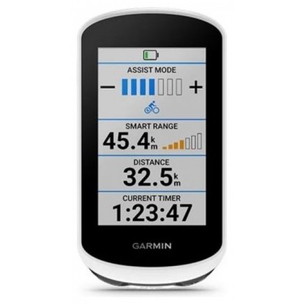 Si tienes una eBike compatible con Shimano Steps o con la tecnología ANT+®, puedes ver una pantalla de estado específica de eBike que muestra los campos de datos, como la autonomía de la batería y mucho más. Incluso recibirás rutas inteligentes y alertas de la autonomía en función del estado de la batería, el nivel de pedaleo asistido y el trayecto planificado.