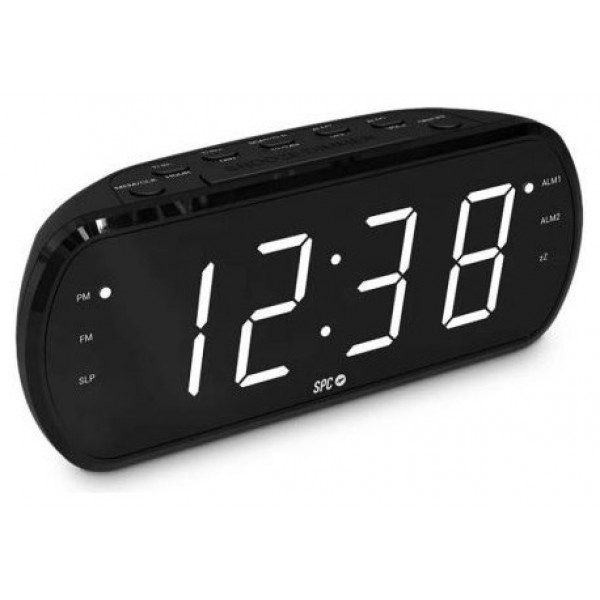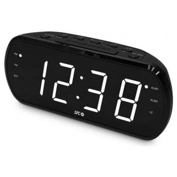 Radiodespertador con pantalla LED de alta definición con dígitos de gran tamaño. Intensidad de luz regulable en 3 niveles y opción de apagado total. Memoriza 2 alarmas, función Snooze con varias repeticiones y temporizador de apagado.