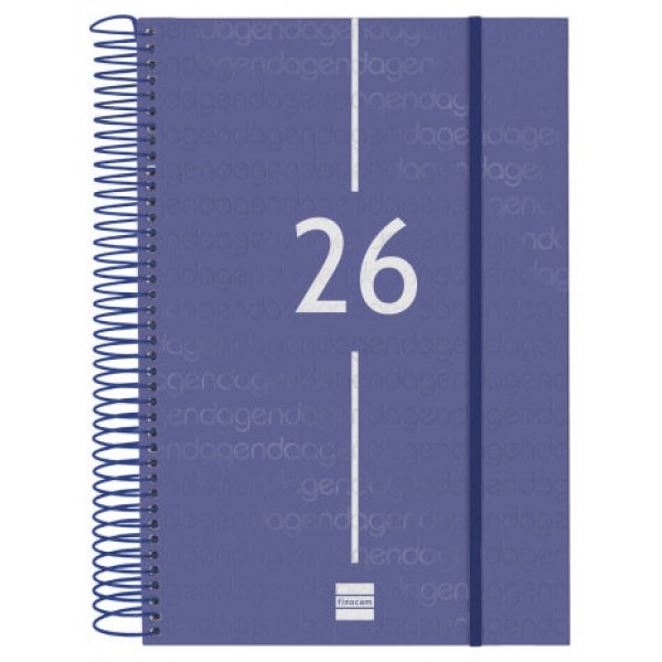 Agenda de espiral de estilo moderno. Con tapas ligeras de polipropileno y goma elástica. Ideal para uso personal y/o profesional. Esquinas microperforadas para localizar rápidamente el día/semana en curso. Agenda con información de interés en la anualidad y otros contenidos extra. Formato profesional de sobremesa que permite guardar papeles DIN A5 o DIN A4 doblados sin que sobresalgan de la agenda. Duración: Enero 2026 - Diciembre 2026 (12 meses). Interior: 1 Día Página. Amplio espacio de escritura para cada día. Con medias horas. Sábados y domingos en página completa. Con información de los festivos de España. La anualidad de la agenda incluye la información relativa a: onomástica, festivos nacionales, cambios de estación e inicios de los años nuevos chino, musulmán, ortodoxo y hebreo. La agenda dispone también de otros contenidos extra: datos personales, horarios, calendarios, planificación anual del año y del año siguiente, festivos internacionales, cómo buscar en Google, usos del teclado, mapa de Europa y de los husos horarios, hojas para notas y hojas para teléfonos, direcciones y e-mails. Idioma del artículo: español. Formato: E11 - 165x242 mm. Tapas de polipropileno, espiral simple metálica y papel. 70 g/m². Papel FSC®.