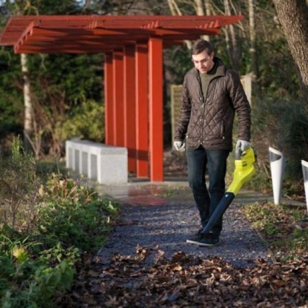 Con una batería de 4,0 amperios (incluida), este soplador de hojas puede cubrir un área de hasta 170 m² con una sola carga. En este kit se incluyen: