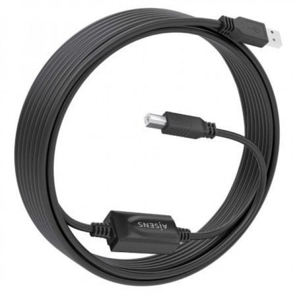 Cable Alargador USB 2.0 con Amplificador Aisens A101-0881/ USB Macho - USB Tipo-B Macho/ 10m/ Negro