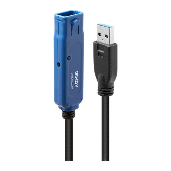 Lindy 43361. Longitud de cable: 20 m. Conector 1: USB A, Conector 2: USB A, Versión USB: USB 3.2 Gen 1 (3.1 Gen 1), Tasa de transferencia (máx): 5 Gbit/s, Contactos del conector chapado: Níquel, Color del producto: Negro, Magnéticamente protegida