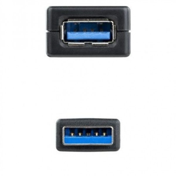 - Cable prolongador USB 3.0 con conector tipo A macho en un extremo y tipo A hembra en el otro.