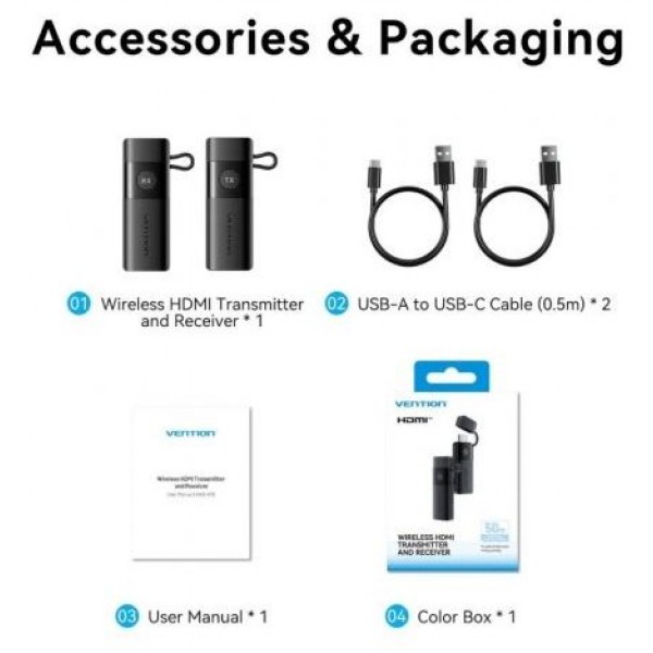 Adaptador/Transmisor de vídeo inalámbrico USB Tipo-C - HDMI Vention ADKB0