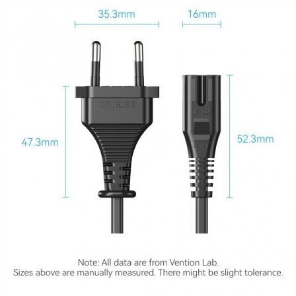 Cable Alimentación Forma 8 Vention ZCLBAC/ CEE7/16 Macho - C7 Hembra/ 1.8m