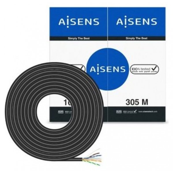 AISENS® ? Cable de Red Exterior Impermeable RJ45 Cat.6 UTP Rígido CCA AWG23, Negro, 305M