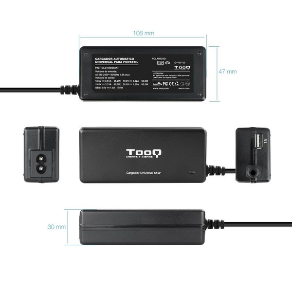 Multi tensión con voltajes de salida auto regulables 18,5V/19V/19,5V/20V 1xUSB: DC 5V 1A(MAX) 5W