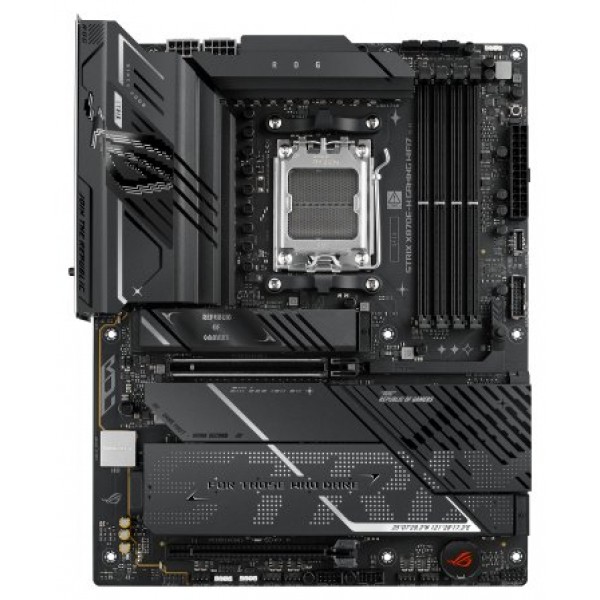 ASUS ROG STRIX X870E-H GAMING WIFI7. Fabricante de procesador: AMD, Socket de procesador: Zócalo AM5, Procesador compatible: AMD Ryzen 7000 Series, AMD Ryzen 8000 Series, AMD Ryzen 9000 Series. tipos de memoria compatibles: DDR5-SDRAM, Memoria interna máxima: 256 GB, Tipo de ranuras de memoria: DIMM. Interfaces de disco de almacenamiento soportados: M.2, SATA III, Tipos de unidades de almacenamiento admitidas: HDD & SSD, Niveles RAID: 0, 1, 10, 5. Tipo de interfaz ethernet: 5 Gigabit Ethernet, Estándar Wi-Fi: Wi-Fi 7 (802.11be), Wi-Fi estándares: Wi-Fi 7 (802.11be). Componente para: PC, Factor de forma: ATX, Familia del chipset: AMD