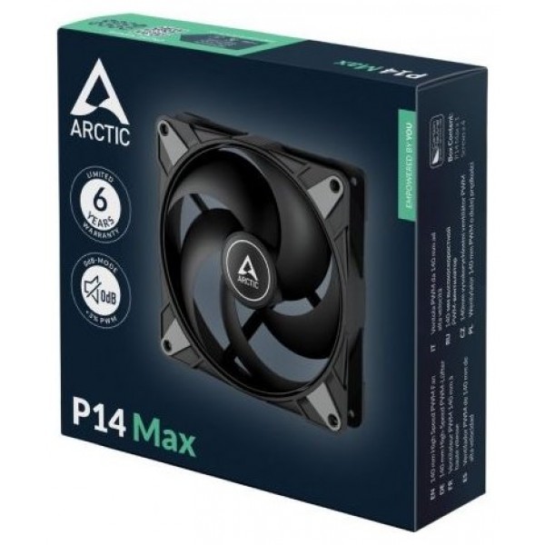Como característica especial, el P14 Max está equipado con el rodamiento hidrodinámico de eficacia probada de ARCTIC. Esto permite el funcionamiento prácticamente silencioso a bajas velocidades que los clientes han estado solicitando. A máxima velocidad, se garantiza un rendimiento excepcional. Aunque estos rodamientos tienden a desgastarse, ARCTIC no compromete la durabilidad y ofrece una garantía de 6 años.