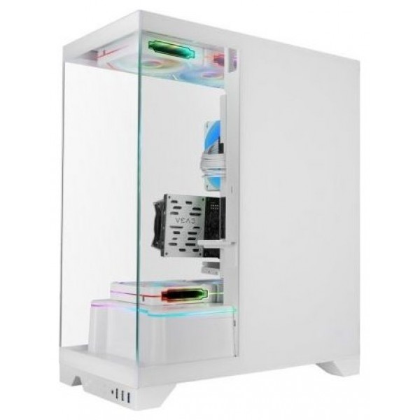 La MC-PRISMA ofrece una experiencia única al integrar tres paneles de cristal templado continuo sin marcos. Este diseño envolvente permite contemplar el interior desde múltiples ángulos, realzando cada componente con una nitidez y elegancia incomparables. Perfecta para configuraciones ARGB, convierte tu equipo en un espectáculo visual que refleja la personalidad y creatividad de cada usuario.
