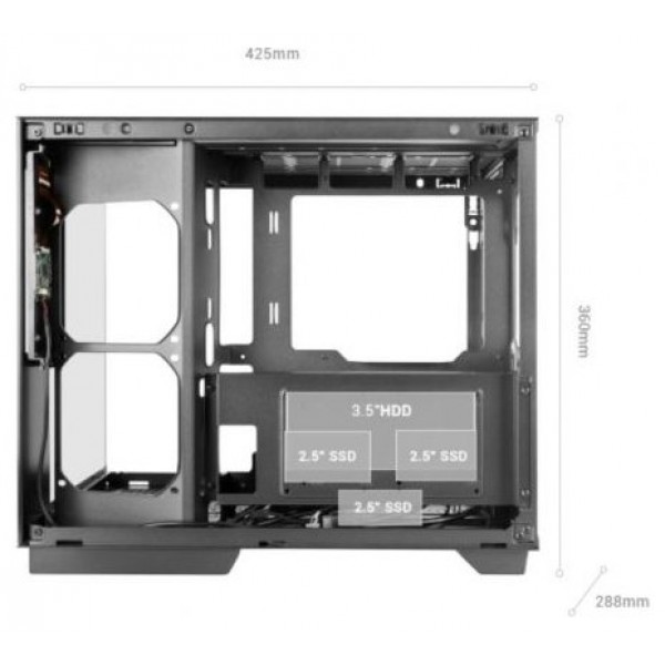 Equipada con un panel frontal de última generación, la MC-MIRAGE incluye USB 3.0, USB-C y HD Audio + Mic, ofreciendo acceso inmediato a periféricos y dispositivos externos.