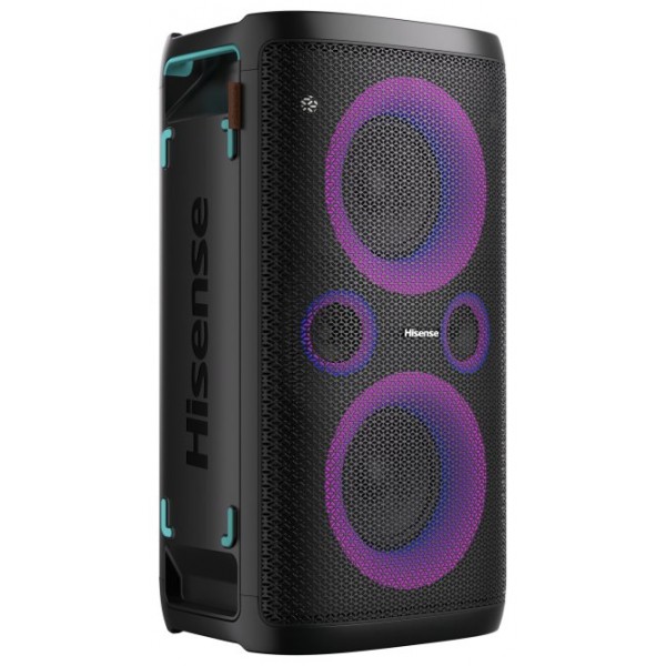 Hisense Party Storm. Potencia estimada RMS: 300 W, Rango de frecuencia: 50 - 60 Hz. Tecnología de conectividad: Inalámbrico. Tipo de producto: Altavoz para fiestas, Color del producto: Negro, Funciones de protección: Resistente al agua. Uso recomendado: Universal. Tipo de batería: Batería integrada, Capacidad de batería: 7650 mAh, Autonomía: 15 h