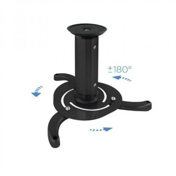 Soporte de fijación en techo para proyector hasta un máximo de 10 kg de peso.. Fabricado en metal de alta resistencia, siempre con la calidad de los productos TooQ.. Especificaciones:. Soporte de fijación en techo para proyector. Patrón universal de montaje. Carga Máxima: 10 kg. ángulo de Inclinación: -15º / +15º. ángulo máximo de giro: 360º (depende de la instalación y del espacio disponible). Distancia entre techo y proyector: 130 hasta 200 mm. Color: Negro o Plata. Disponible en Negro (PJ1010TN-B). Contenido del paquete:. 1 x Soporte. 1 x Kit de montaje (No incluye herramientas). 1 x Manual de instalación