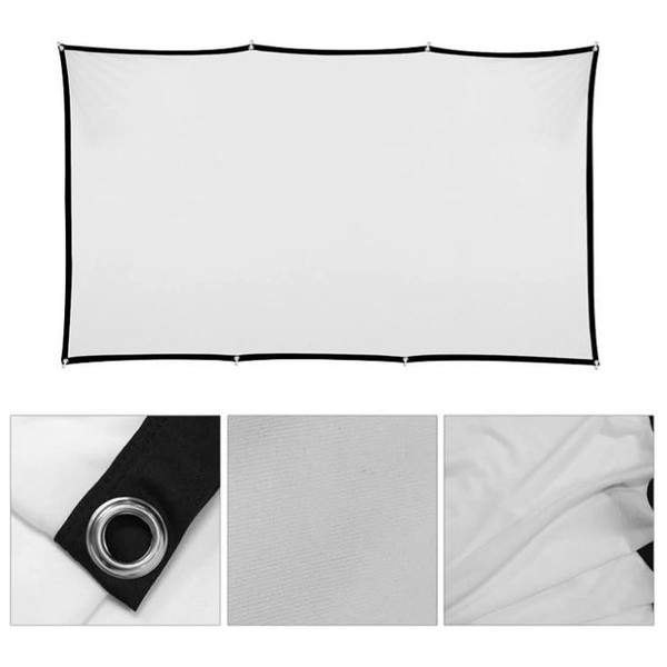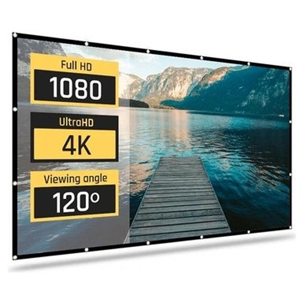 | Características | - Área visible de 120" (265 x 149 cm) - Formato: panorámico 16:9 - 16 ollaos - Factor de ganancia: 1,1 - Ángulo de visión: 120º - Ideal para proyectar vídeo y fotografías - Bordes negros perimetrales de 3 cm - Apta para interiores - Tela elástica de poliéster resistente a las arrugas, plegable y lavable - Ideal para cualquier tipo de proyector, SVGA, XGA, 3D, HD, Full HD y 4K - Temperatura de trabajo: -20ºC ~ +60ºC - Medida plegada en bolsa: 36 x 29 x 5 cm - Peso total: 900 g - Incluye 4 cuerdas de 1 metro de longitud y set de 19 colgadores |