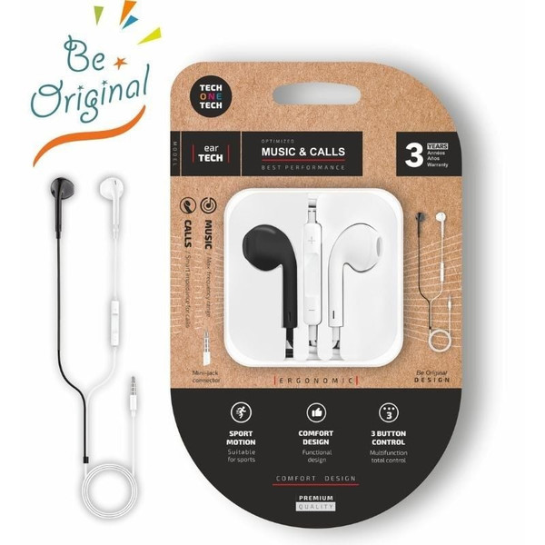 Auriculares Intrauditivos Tech One Tech earTECH B&W Be Original TEC1011/ con Micrófono/ Mini Jack 3.5/ Blanco y Negro