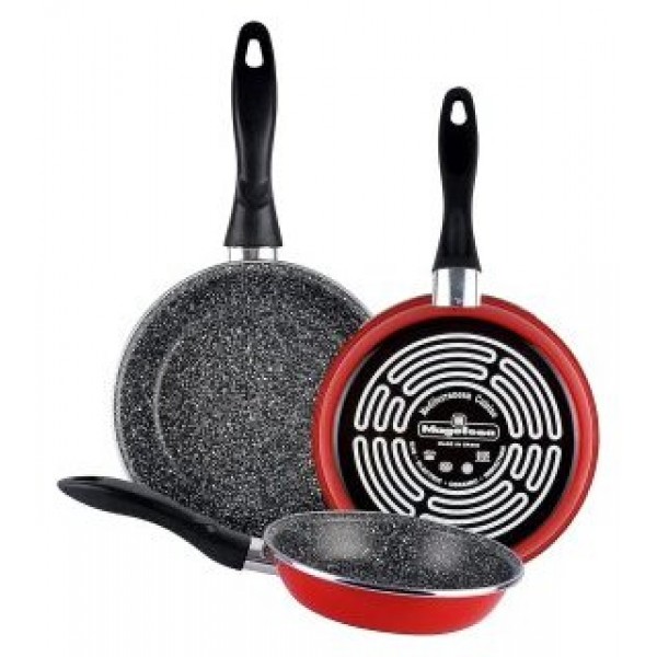 SARTEN MAGEFESA K2 ROJO 20-24-28 LOTE ACERO ANTIADHERENTE EFECTO PIEDRA TODO TIPO COCINAS
