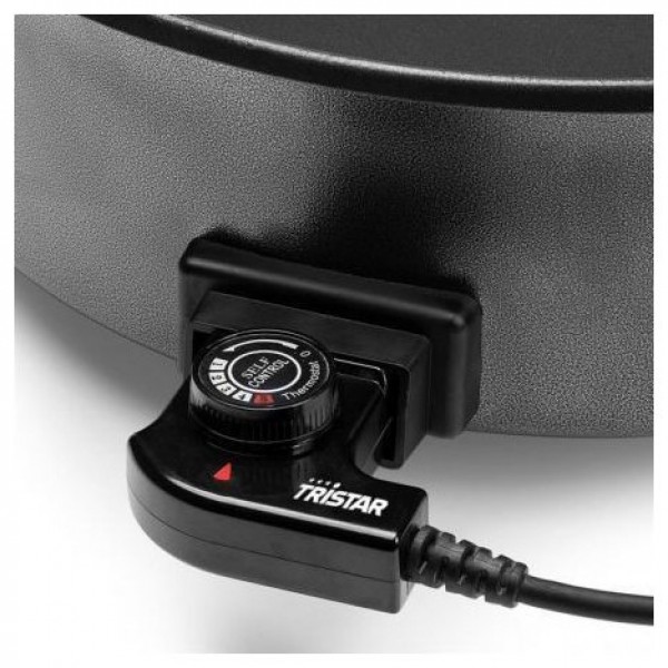 Sartén eléctrica Tristar, accesorio divisor, tapa con válvula de vapor, termostato ajustable, cable de alimentación extraíble, manual