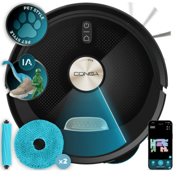 Con Inteligencia Artificial y LaserEye navega con precisión incluso en entornos desordenados. Identifica objetos pequeños, suelos y suciedad. Conga toma las decisiones adecuadas para que tú no te preocupes por nada.