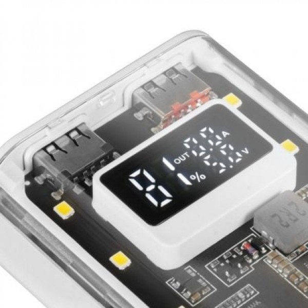 Powerbank de 22,5W 10000mAh compacta con tecnologías de carga ultra rápida QC3.0 y PD3.0.. Pantalla LED de carga para monitorización en tiempo real.. Conectividad total con puertos 2xUSB-A, USB-C y microUSB.. Función linterna, cable de carga USB-C/USB-A y correa de transporte incluidas.. Especificaciones:. . Potencia: 22,5W. Entrada: . USB-C: 5V“2.5A; 9V“2A; 12V“1.5A. MicroUSB: 5V“2A; 9V“2A; 12V“1.5A. Salida:. USB-C: 5V“3A, 9V“2.2A 12V“1.67A. USB-A1: 5V“3A, 5V“4.5A, 9V“2A 12V“1.5A. USB-A2: 5V“2.1A . Capacidad batería: 10000mAh 34Wh 3.7V. Tecnología de carga: QC3.0, PD3.0. Conectores: 2x USB-A, 1x USB-C, 1x MicroUSB. Dimensiones: 86x64x36mm / 227g. Extras: Cable de carga USB-C/USB-A y función linterna