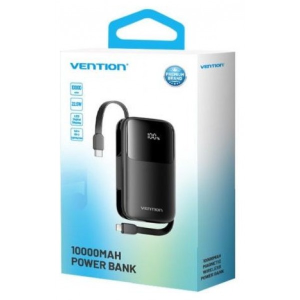 Powerbank 10000mAh Vention I11BA/ 22.5W/ Negra/ Incluye Cable USB Tipo-C y Lightning