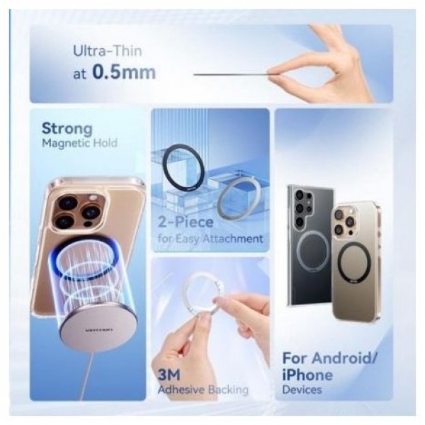 El paquete de 2 anillos adhesivos metálicos universales Vention (modelo: KQOB0) está diseñado como accesorio auxiliar para usar con soportes magnéticos para teléfonos, especialmente aquellos que utilizan tecnología de montaje magnético, como soportes magnéticos para teléfono de coche o bases de carga magnéticas. Cada paquete incluye dos anillos metálicos adhesivos delgados y duraderos, que permiten a los usuarios fijar uno a su dispositivo o funda para una mayor compatibilidad con accesorios magnéticos. Fabricados en metal de alta calidad con un fuerte reverso adhesivo, estos anillos ofrecen un montaje fiable, una fácil instalación y compatibilidad con una amplia variedad de smartphones, tablets y dispositivos electrónicos portátiles similares.