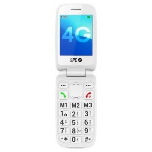 Teléfono móvil 4G con tapa y teclas grandes, menú sencillo, pantalla de 2,8", 9 días de autonomía en uso estándar, base de carga, botón SOS, compatibilidad HAC para audífonos, SMART HELP, cámara trasera y 8 memorias rápidas