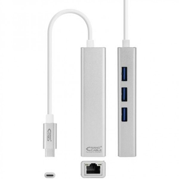 Hub USB Tipo-C Nanocable 10.03.0404/ 3xUSB/ 1xRJ45/ Gris