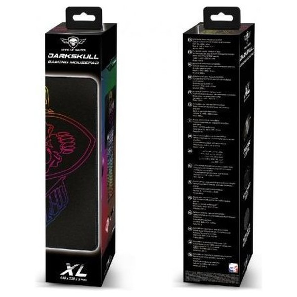 - DARSKULL XTRA LARGE: La alfombra DARKSKULL tamaño XL mide 44 x 33 centímetros. Un grosor de 3 milímetros. Ofrece más espacio para acomodar su mouse.