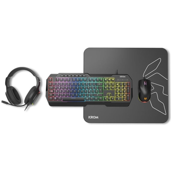 Krom Kenta es un pack gaming, disponible en blanco y negro, con el que podrás comenzar a crear tu setup ideal. Cuenta con un teclado anti-ghosting con prácticas teclas multimedias, cómodos auriculares estéreo con micrófono integrado, ratón con sensor óptico que alcanza 7200 DPI y una alfombrilla de gran tamaño con la que completar tu espacio de juego.