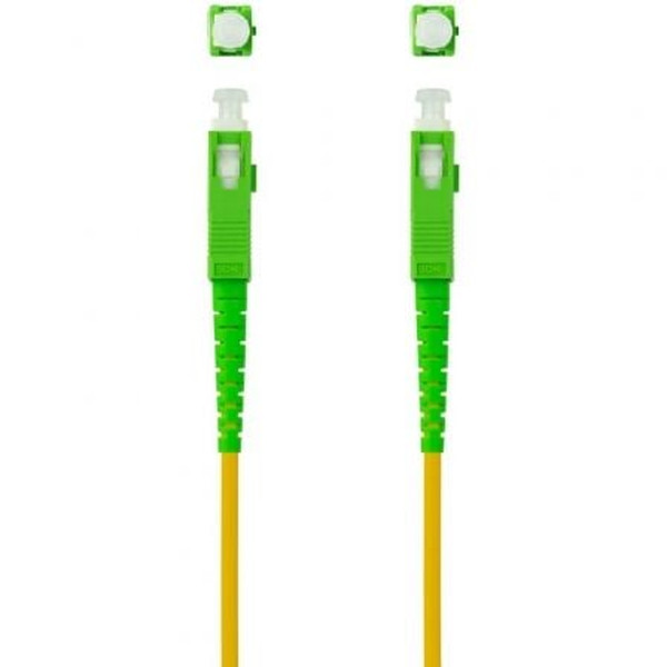 Especificaciones:. . Se utiliza para conectar la roseta de compañía de internet al router. Tipo de fibra: Monomodo G657A2 . Tipo de conector: SC/SC. Tipo de pulido: APC/APC. Diámetro exterior: 3 mm. Pérdida de inserción: <0.3dB. Pérdida de retorno: >;50dB. Sección del núcleo: 9/125 micrones. Revestimiento LSZH. Longitud: 10 metros. Color: Amarillo. NormativaS: RoHS. Test de Funcionamiento: 100% testado