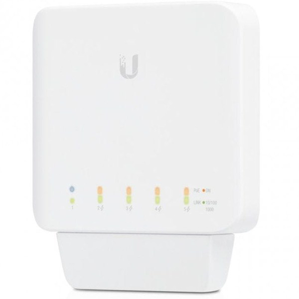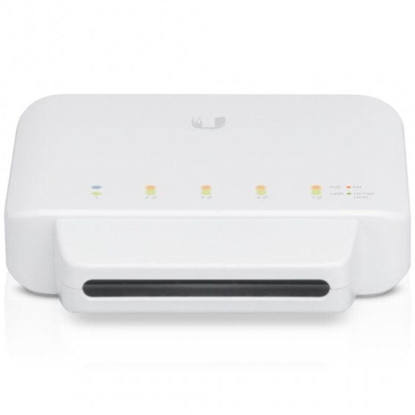 Construya y expanda su red con UniFi® Switch, parte del UniFi Enterprise System. El conmutador UniFi, modelo USW-Flex, es un conmutador Gigabit de capa 2 configurable con detección automática 802.3af PoE. Ofrece 5 puertos RJ45 Gigabit Ethernet, que proporcionan 1 entrada PoE y 4 enlaces de salida PoE a sus dispositivos.