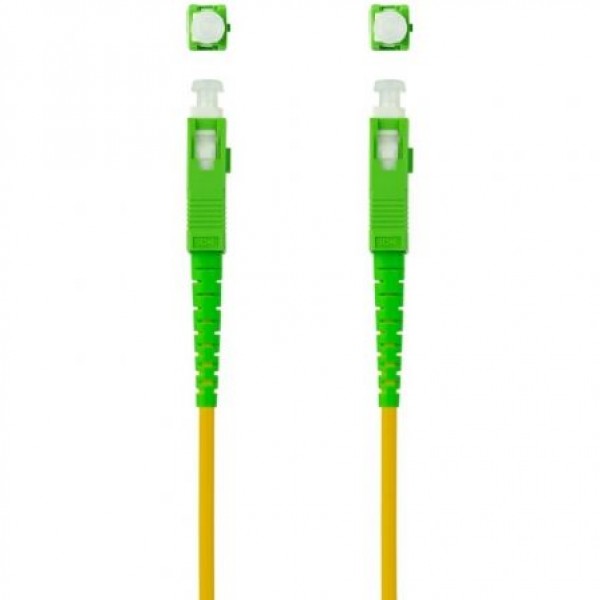 Especificaciones:. . Se utiliza para conectar la roseta de compañía de internet al router. Tipo de fibra: Monomodo G657A2 . Tipo de conector: SC/SC. Tipo de pulido: APC/APC. Diámetro exterior: 3 mm. Pérdida de inserción: <0.3dB. Pérdida de retorno: >;50dB. Sección del núcleo: 9/125 micrones. Revestimiento LSZH. Longitud: 1 metro. Color: Amarillo. NormativaS: RoHS. Test de Funcionamiento: 100% testado