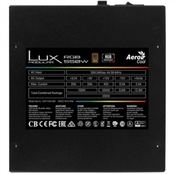 FUENTE DE ALIMENTACION MODULAR AEROCOOL LUX RGB 550W