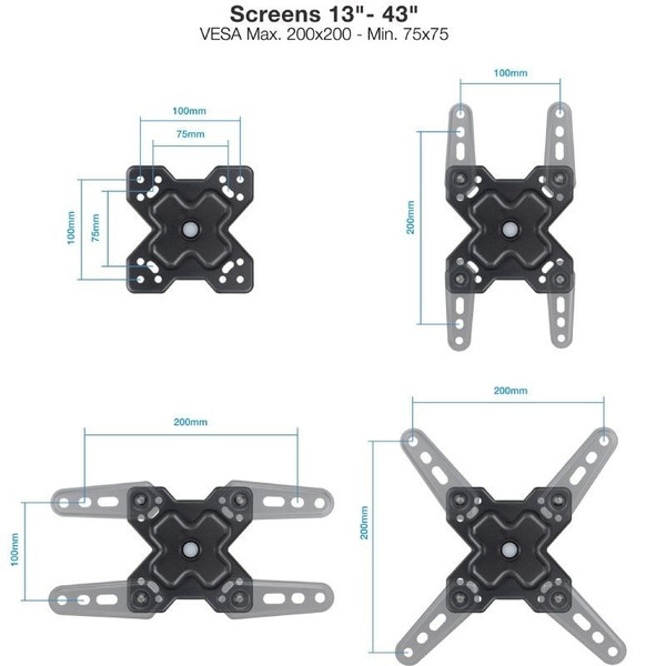 - Compatible con VESA: 75x75, 100x100, 100x200, 200x100, 200x200