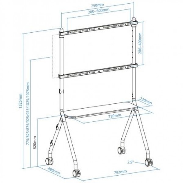 Rango de ajuste de altura del soporte: 775/825/875/925/975/1025/1075 mm