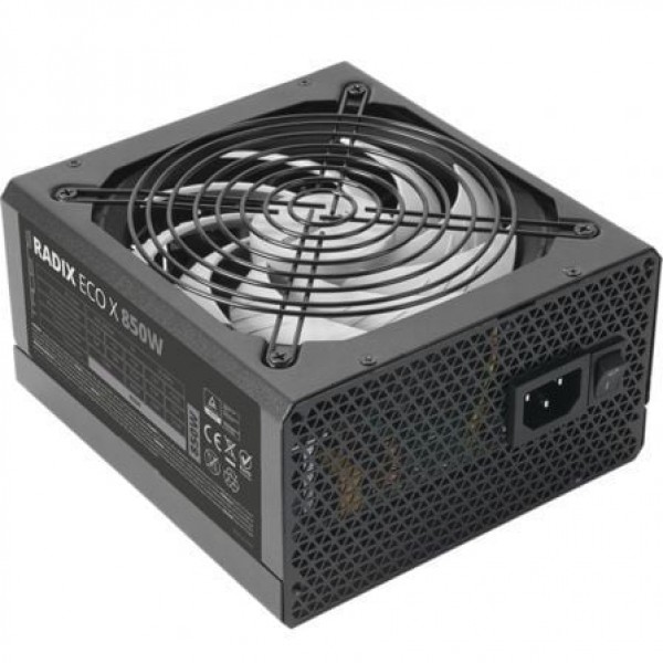 SILENCIO ABSOLUTO. AI-RPM Y 140MM FDB.. Equipada con la última tecnología en control de ventiladores AI-RPM ideal para garantizar un funcionamiento sin ruido, la RADIX ECO X 850 cuenta con control térmico inteligente de última generación basado en algoritmos avanzados y sistemas de control multinivel para mantener el ventilador al mínimo. Además, la RADIX ECO X 850 cuenta con un ventilador XL de 140mm con rodamiento de fluido dinámico y motor extragrande para maximizar su estabilidad. Toda la tecnología disponible para asegurar el mínimo ruido y la máxima eficiencia y durabilidad.. . TECNOLOGíA AVANZADA DE CONVERSIóN DC-DC. La tecnología de conversión DC-DC optimiza la eficiencia y garantiza una estabilidad y adaptabilidad excepcionales, protegiendo los componentes más sensibles. Incluso ante variaciones de carga, esta fuente ATX mantiene un rendimiento óptimo y una estabilidad del sistema en cualquier situación.. . EFICIENCIA PROFESIONAL. Con una eficiencia del 99% en el sistema DIGITAL APFC y un 87% de eficiencia eléctrica lograrás un perfecto equilibrio entre eficiencia y consumo. Además, su tecnología de raíl único +12v te permitirá instalar el hardware más exigente.. . DISEñO DE CABLES OPTIMIZADO. Los cables de la RADIX ECO X 850 son planos, negros y extralargos: una combinación de prestaciones que hacen su instalación no solo más fácil que nunca, sino además totalmente versátil para cualquier montaje en cualquier tipo de caja. Construye el PC definitivo con una torre de gran tamaño y disfruta de tus partidas a lo grande.. . Especificaciones:. . Potencia 850W. AC input 200-240V 50-60Hz. PFC Activo. Eficiencia >;87%. Ruido 12dB. Factor de forma ATX. Ventilador 140mm. Rail 12V unico. Certificaciones ATX12V, CE, ROHS, TUV. Protecciones OPP, OVP, UVP, SCP, OCP, OTP, OLP, SCP, NLO, PFP, TCP. Tipo de cables Fijos. Cables 1x 24 pin, 1x 12V 4+4 pin, 6x SATA, 3x MOLEX, 2x 6+2 pin PCI-E. Dimensiones 150x160x85mm / 1.54Kg. Tecnologia DC-DC, SMD. Extra Control Al-RPM del ventilador y cables planos extra largos