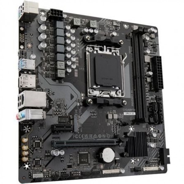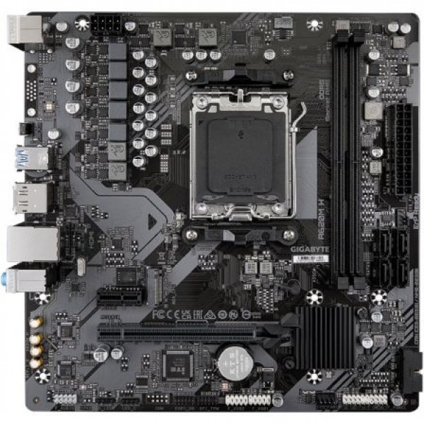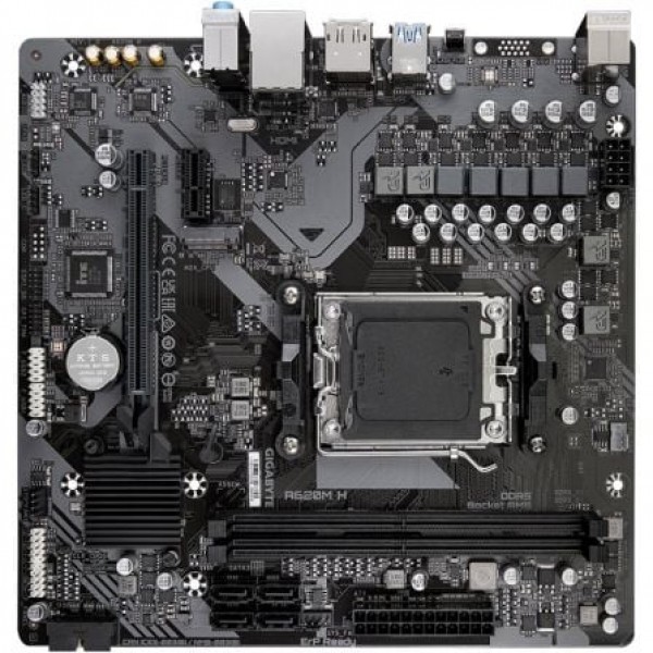 Gigabyte A620M H. Fabricante de procesador: AMD, Socket de procesador: Zócalo AM5, Procesador compatible: AMD Ryzen? 5, AMD Ryzen 7 7th Gen, AMD Ryzen 9 7th Gen. tipos de memoria compatibles: DDR5-SDRAM, Memoria interna máxima: 96 GB, Tipo de ranuras de memoria: DIMM. Interfaces de disco de almacenamiento soportados: M.2, SATA III, Tipos de unidades de almacenamiento admitidas: HDD & SSD, Niveles RAID: 0, 1, 10. Máxima resolución: 4096 x 2160 Pixeles. Conector USB: USB tipo A, USB Tipo C