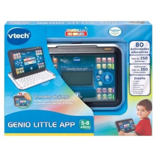 Genio Little App de VTech combina la pantalla en color con la función deslizable, para jugar con él como tablet o como portátil. Contiene 80 actividades clasificadas en 27 aplicaciones que cubren muchas materias. Además, ¡almacena hasta 350 creaciones!